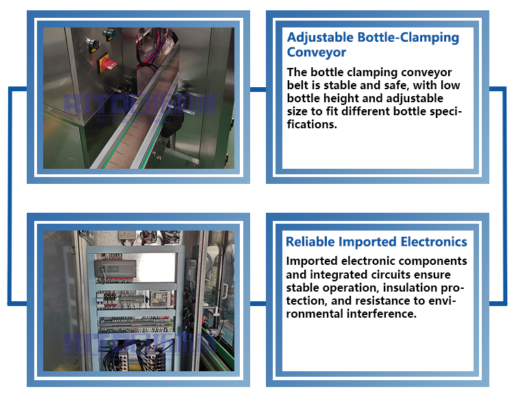 Can be connected with bottle unscrambler, capping machine, aluminum foil sealing machine and labeling machine.