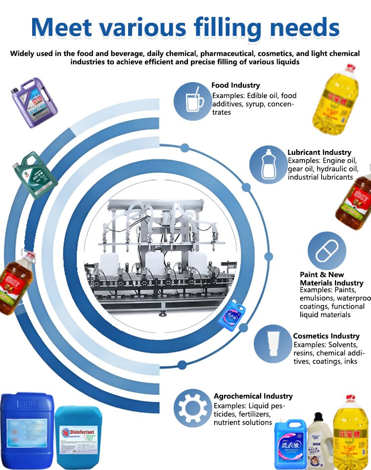 Applicable materials: liquids, beverages, oils, chemical liquids, detergents, jams, honey, dairy products, and more.