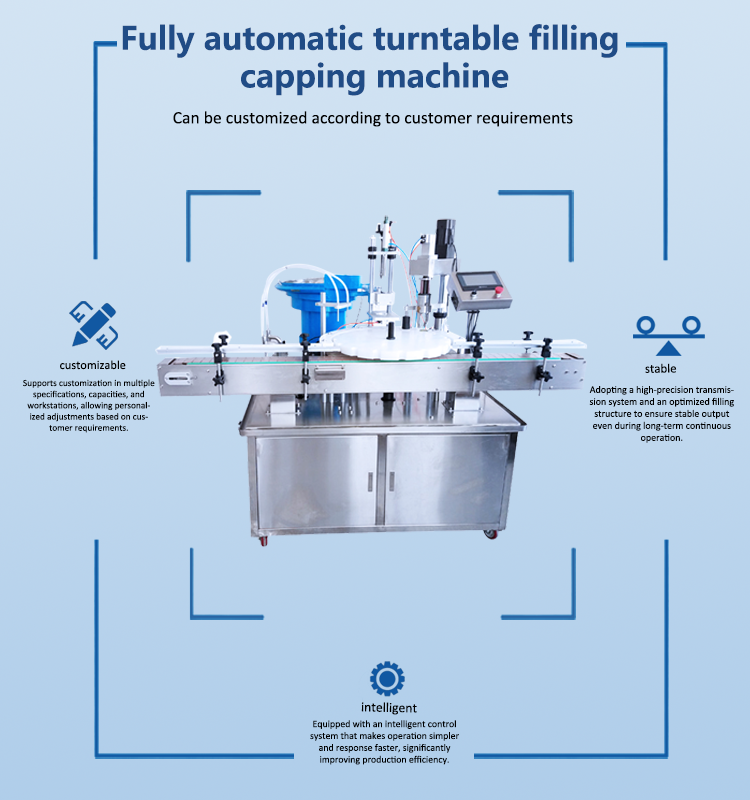 Overall, investing in a Fully Automatic Turntable Filling Capping Machine is an excellent choice for any business that aims to increase its efficiency, productivity, and profitability while improving product quality and safety.