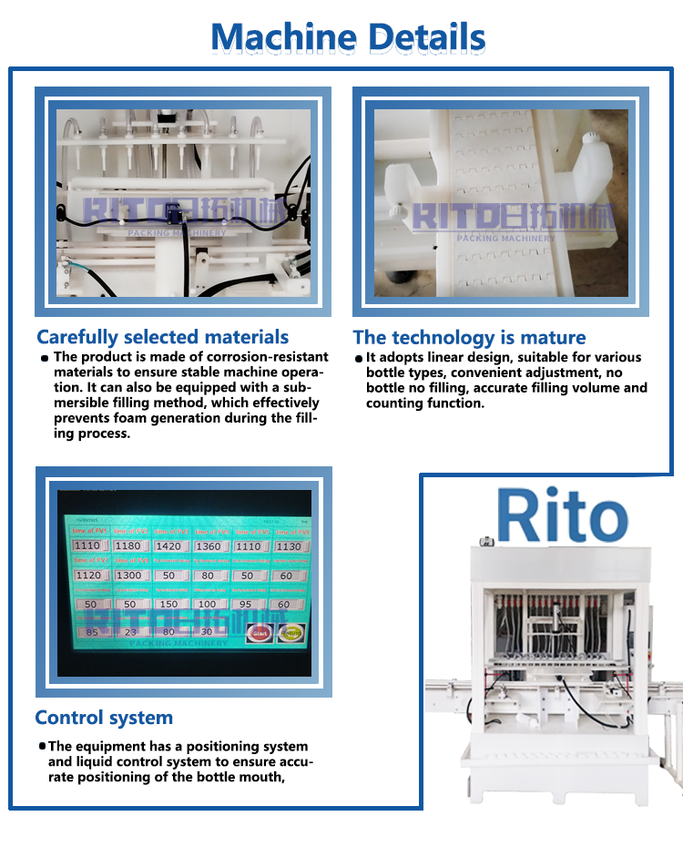 Based on the needs of customers in various industries and the in-depth cultivation of the terminal market, Guangzhou RITO packaging machine co.,Ltd has launched piston liquid filling machine, capping machine, labeling machine, and Back end packaging machine with its strong R&D capabilities in the field of packaging machine marking and many years of industry accumulation. Industry application solutions liquid filling machine series, capping machine series, labeling machine series and other back end carton packing machines have been recognized and praised by many customers at home and abroad, and strive to have an impact on the Chinese manufacturing industry in the world.