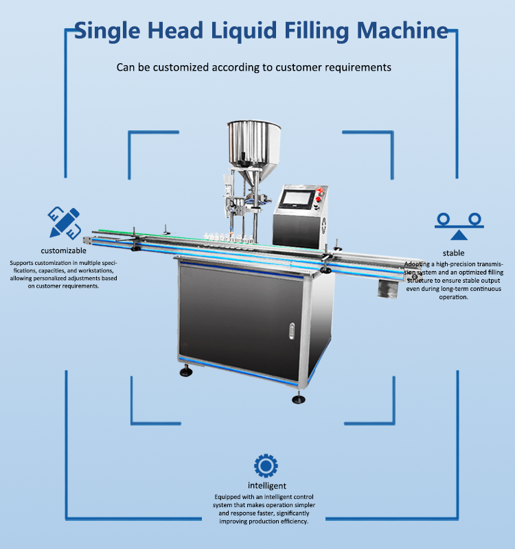 Our automatic single head liquid filling machine is constructed from 304 or 316L stainless steel, featuring a simple structure, high filling accuracy, and easy operation. With its long service life and reliable performance, it is widely applied in the food, chemical, pharmaceutical, and cosmetic industries.