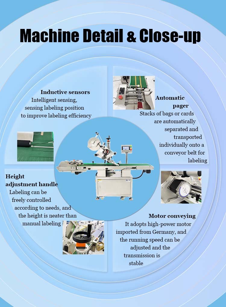 Our automatic labeling machine supports automatic pagination, feeding, receiving and labeling of various flat and bagged products, including: